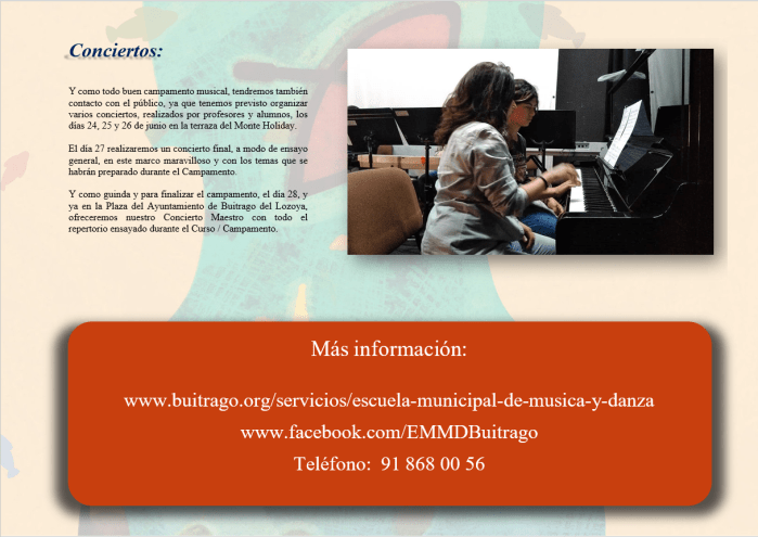 Todas las actividades de la EMMD de Buitrago del Lozoya han sido suspendidas este año 1 de la Era del Covid19, es decir: desde marzo de 2020.